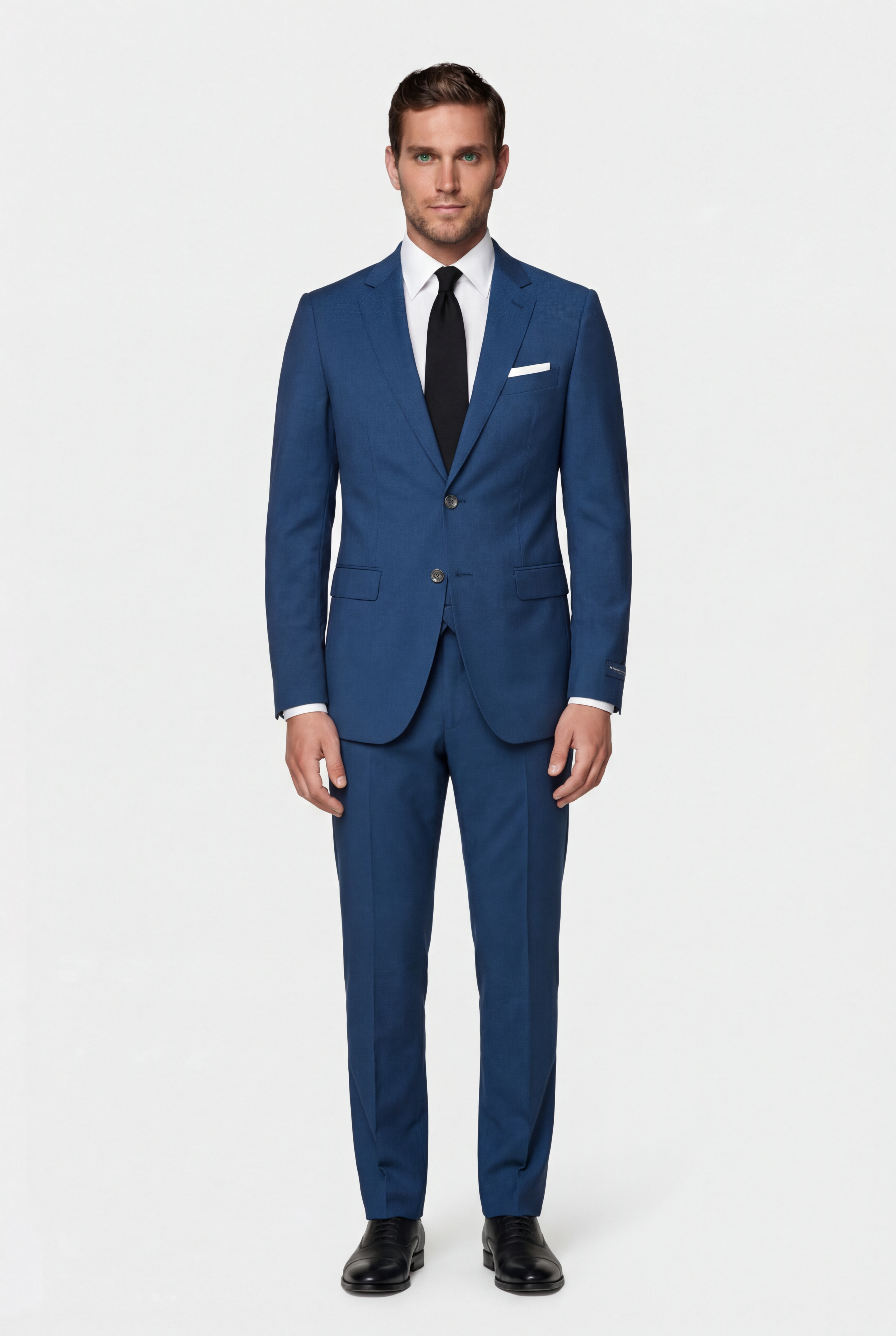 • Классический мужской костюм приталенного силуэта из шерстяной итальянской ткани. Пиджак однобортный, две шлицы. Застежка на две пуговицы. Воротник классический, отложной, на лацкане имеется фасонная петля. Два боковых кармана с клапанами, нагрудный карман «листочка». Рукава со шлицами на 4 пуговицы пришитые внахлест. Три внутренних кармана, один застегивается на пуговицу. Брюки полуприлегающего силуэта, два боковых кармана, два задних кармана с застежкой на пуговицу, на поясе предусмотрены шлевки для ремня. Отличный вариант на каждый день и для торжественного случая.