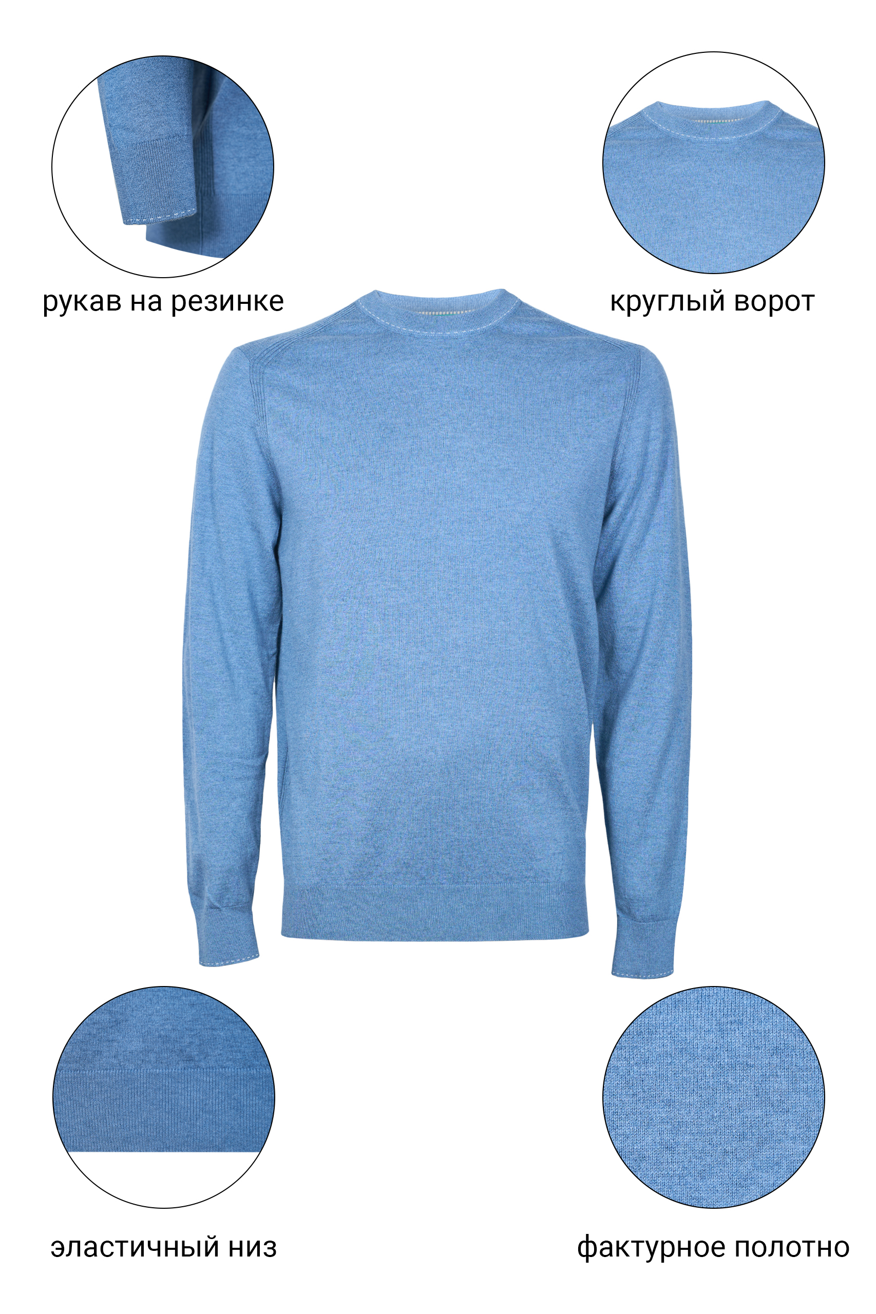• Приталенный силуэт, Круглый, Однотонный, Серо-голубой